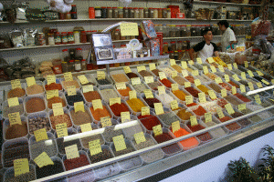 お肉屋さん、野菜やさん、魚屋さん、、、など日常食品が溢れるマーケット。 | ![]() |